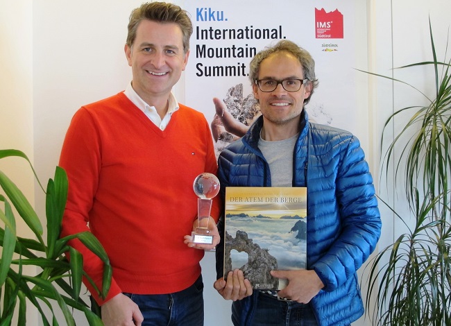 Alex Ploner (IMS) – Markus Gaiser (IMS) with the ITB Award and the book “Atem der Berge”