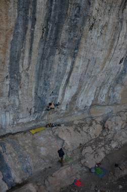 I made good progress, every day felt better on the route and fifth day on the route I finally made it through the first part – 15 moves of 9b/b+. I didn’t feel that pumped, but was kind unprepared mentally to climb the second part – an 8c+ on its own. I kept climbing nevertheless and fell off two moves below the jug. From this jug on, it is only another 20 meters to go of 8b to gain the final length of 40 meters.