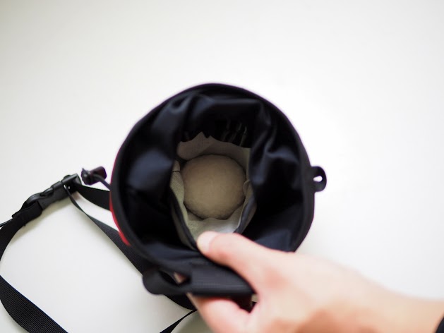The quick access closure of the built-in chalk sock solves the inconvenience of filling chalk. To help even better chalk up, SUPER has high-loft fleece liner and come with a resilient pompon inside the chalk sock. While gripping the pompon, the air squeezed out will help pushing out the chalk and increase the amount of chalk you get. Thanks to the one-handed closure, pompon can be easily taken out to leave chalk marks on a route, and it’s also easy to reach the loose chalk when needed. Furthermore, the new built-in chalk sock system has a ring structure in the middle of the chalk bag. This provides a wide and still opening which helps climbers to chalk up easier.