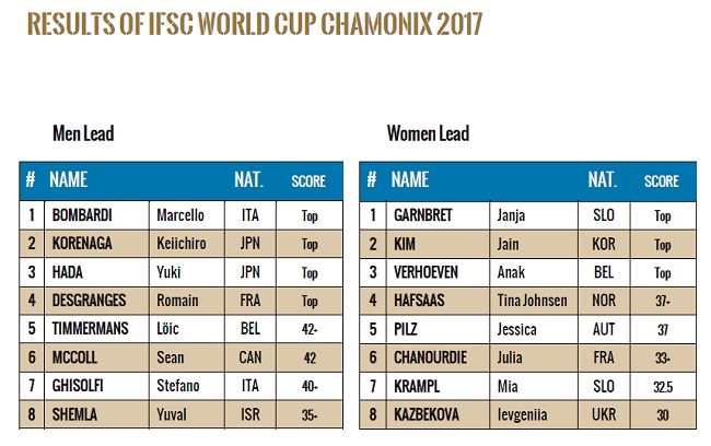 Marcello Bombardi of Italy won his first IFSC World Cup, Japan returned to the podium in Lead and Janja Garnbret made it back-to-back victories to start the Lead season at IFSC World Cup Chamonix.