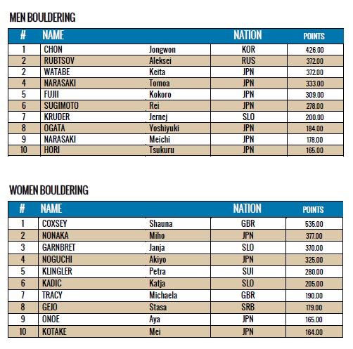 CURRENT BOULDERING WORLD CUP RANKINGS