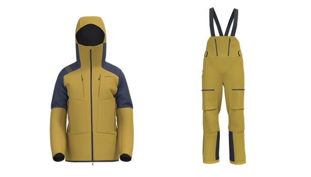 To complete the outfit, La Sportiva introduces the new ski-mountaineering set consisting of the Sender GTX Performance Jacket and Sender GTX Performance Bib Pants. Made with GORE-TEX Performance featuring an ePE membrane, the garments offer waterproofness, wind protection, and optimal breathability during freetouring outings. The jacket, designed with a helmet-compatible hood and underarm vents, ensures comfort and mobility in every phase of the activity. The pants, equipped with adjustable suspenders, pre-shaped knees, side ventilation zippers, and expandable cargo pockets, complete the set by providing functionality and protection even in the most demanding conditions.
