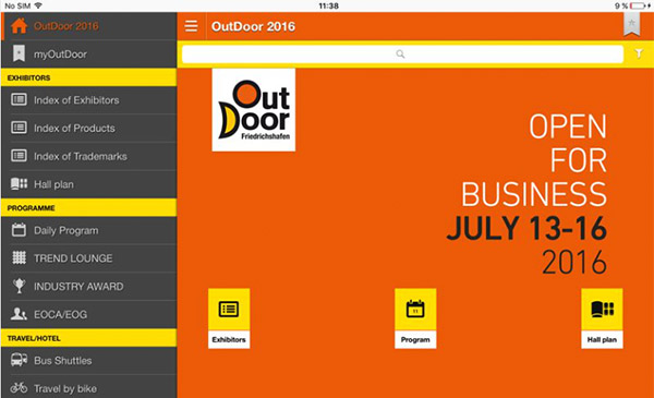 The OutDoor App 2016 for iOS and Android is now available! Whatever info you need: exhibitors, events, bus shuttles, an overview of the hall layout or your own personal appointments – with this you have everything you need at hand. Simply download the app free of charge in the corresponding App Store and you’re all set.