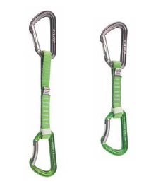 These draws are designed for onsight climbing where every gram and every second counts. The lightweight keylocking Photon carabiners are optimized for fast action and smooth clipping. The Photon carabiners have been updated with a new body design that increases rigidity and strength without increasing weight. The SphereLock closure is an upgrade to the traditional keylock system that minimizes play between the gate and nose for enhanced safety. The dogbones are equipped with the Karstop Evo carabiner retainer that prevents the rope end carabiner from shifting. Available in 11 and 18 cm lengths.