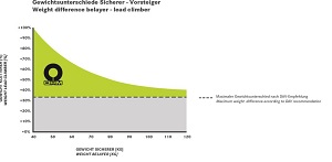 Using a weight bag to reduce the difference in weight is not possible all the time (no-body wants to carry a weight bag to the crag). In addition, weight bags restrict a be-layer’s freedom of movement. And even when using a weight bag, the belayer still has to supply the full braking force (with the associated risk of friction burns as the rope runs through belay device).