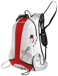 RAPID RACING. The perfect choice for ski mountaineering competitions where every gram counts. The design comes from top ski racers to get the best combination of features, fit, weight and function. Two ski carrying systems allow racers to attach and remove skis without removing the pack from their backs. A velcro pocket near the right hip allows single-handed, fast access to crampons without taking off the pack and can be zipped open from the inside to connect to the main compartment. The Rapid Racing also features the C.A.M.P. exclusive EZ OP buckles on the chest strap and waist belt which use a one-handed pull tab for faster, easier opening. The interior has a pocket specifically designed for a shovel and probe. Weight 378 g