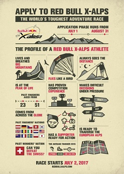 Red Bull X-Alps is back! Applications to compete in the 2017 edition of the race across the Alps are open from July 01 to August 31, 2016.
